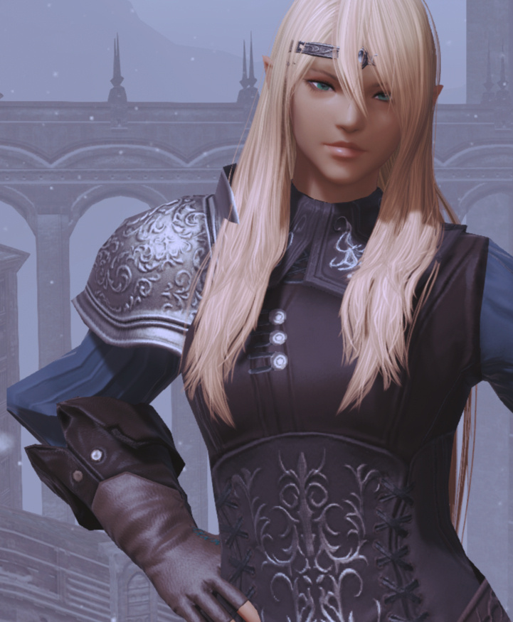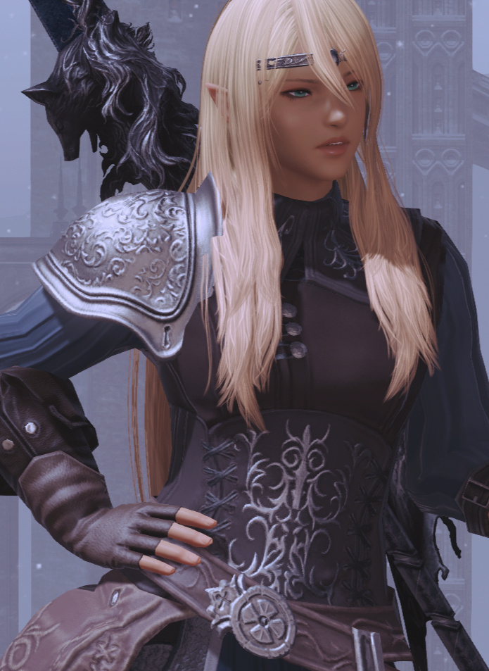 HOUSE LAFONTAINE saw scandal: Baron Etraux Lafontaine and Imogen Century, a Sharlayan astrologian under his asylum, bore a half-elezen child of affair. Shortly after the young Imogen was born, her namesake left Ishgard. Despite the dishonour, Etraux fearlessly claimed his daughter — but he rarely let her leave home, as protective of her as he was proud. As she grew, their relationship strained. She'd sneak out to Foundation to befriend Brumelings; he caught wind and tightened her security.
